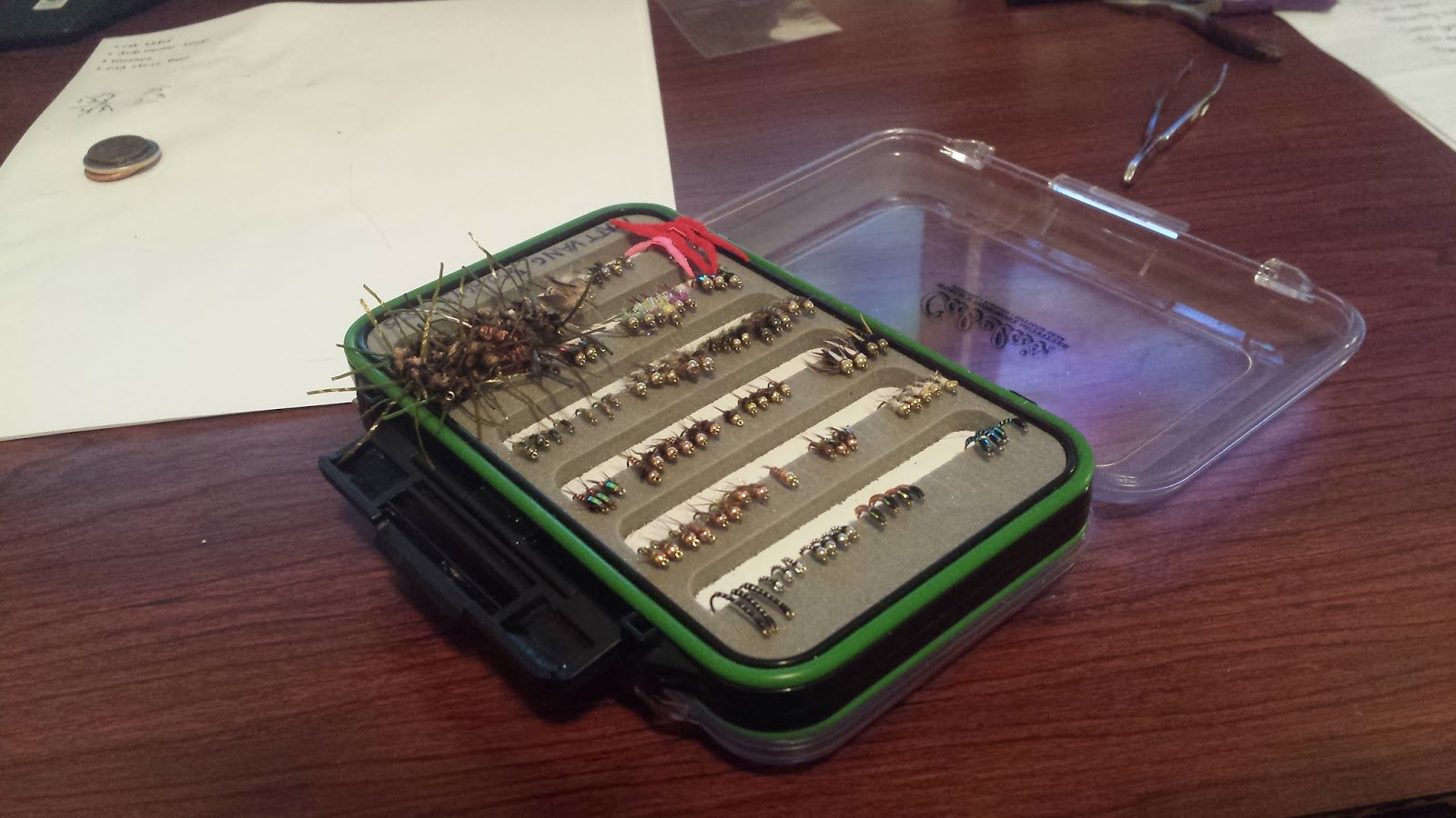 I’ve been working on filling up my fly box because oddly enough I’ve never had a full box of trout patterns that I have confidence in. There is still space in my “working fly box” so more tying fun time. I’m planning on restocking my materials and upgrading my vise soon so hopefully that will make tying more productive and fun.
