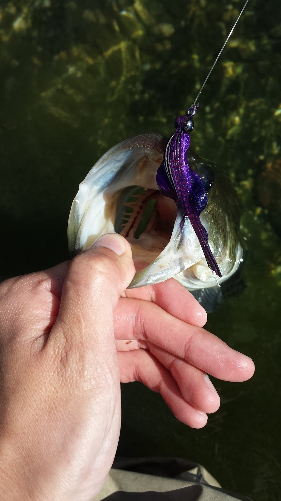 Purple is the color I have the most confidence with and that is what I threw most of the day. The pattern worked well and I ended the day with three solid takes. One while stripping and two while dropshotting. Dropshotting… what a weird way to catch a bass on a fly rod.